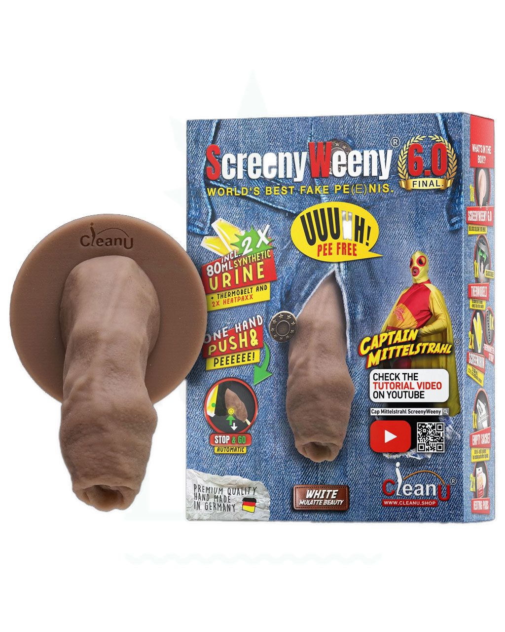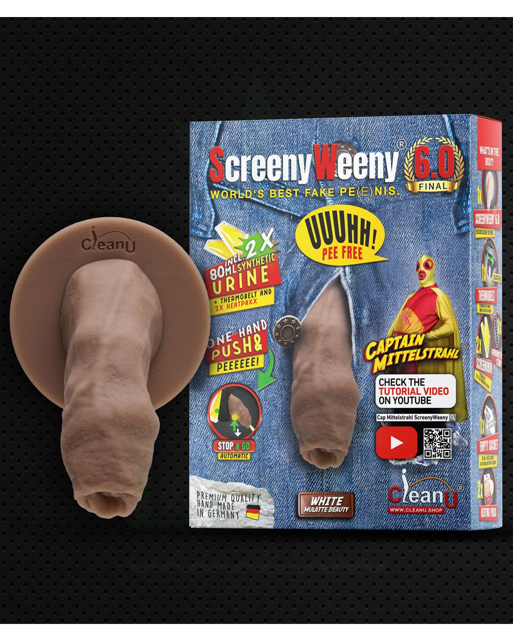 Beim ScreenyWeeny handelt es sich um den “weltbesten” Fake Pe(e)nis. Durch die einzigartige Push&Pee Funktion ist er ideal für den gezielten Einsatz bei einem wichtigen “Date” und durch die One-Hand-Bedienung immer sofort betriebsbereit. Der Screeny Weeny ist in vielen verschiedenen Varianten erhältlich. Dabei bleibt jedem die Wahl, ob heller oder dunkler, ob beschnitten oder unbeschnitten.